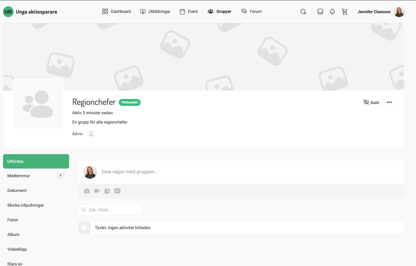 användare sandra.carlsson skapade en dold grupp med namn "regionchefer", men gruppen döljs så att man inte ser gruppen, trots att man är admin eller med i gruppen. Det gäller denna grupp: